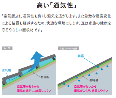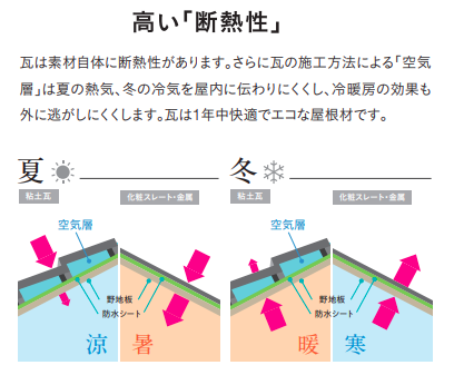 また画像のように瓦には空気層があるので断熱性もあるんですね。瓦は。