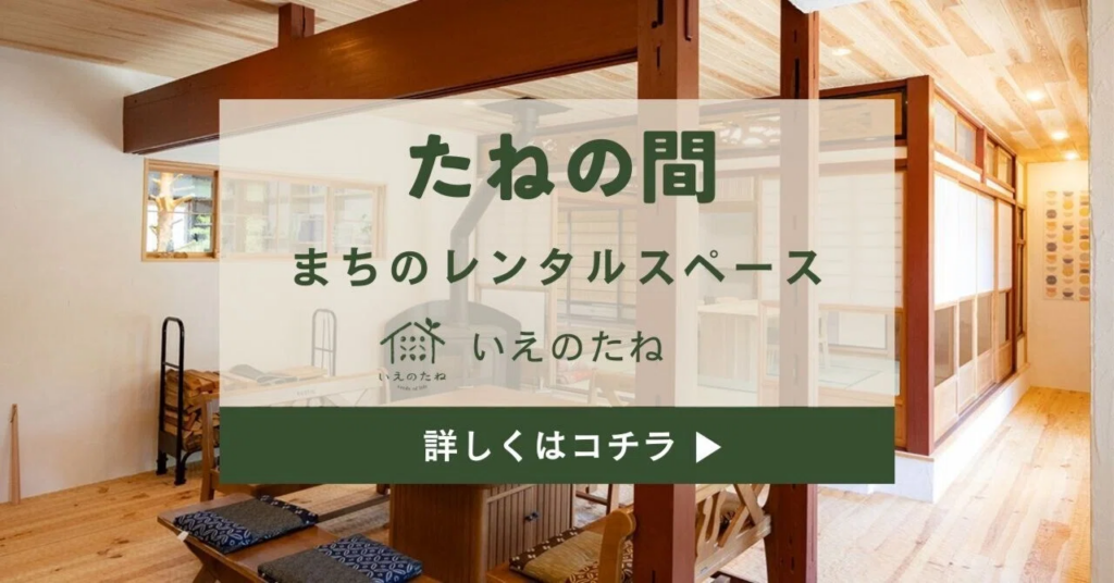 「たねの間」は、 暮らしのたねをあたためる、ちいさなレンタルスペースです。